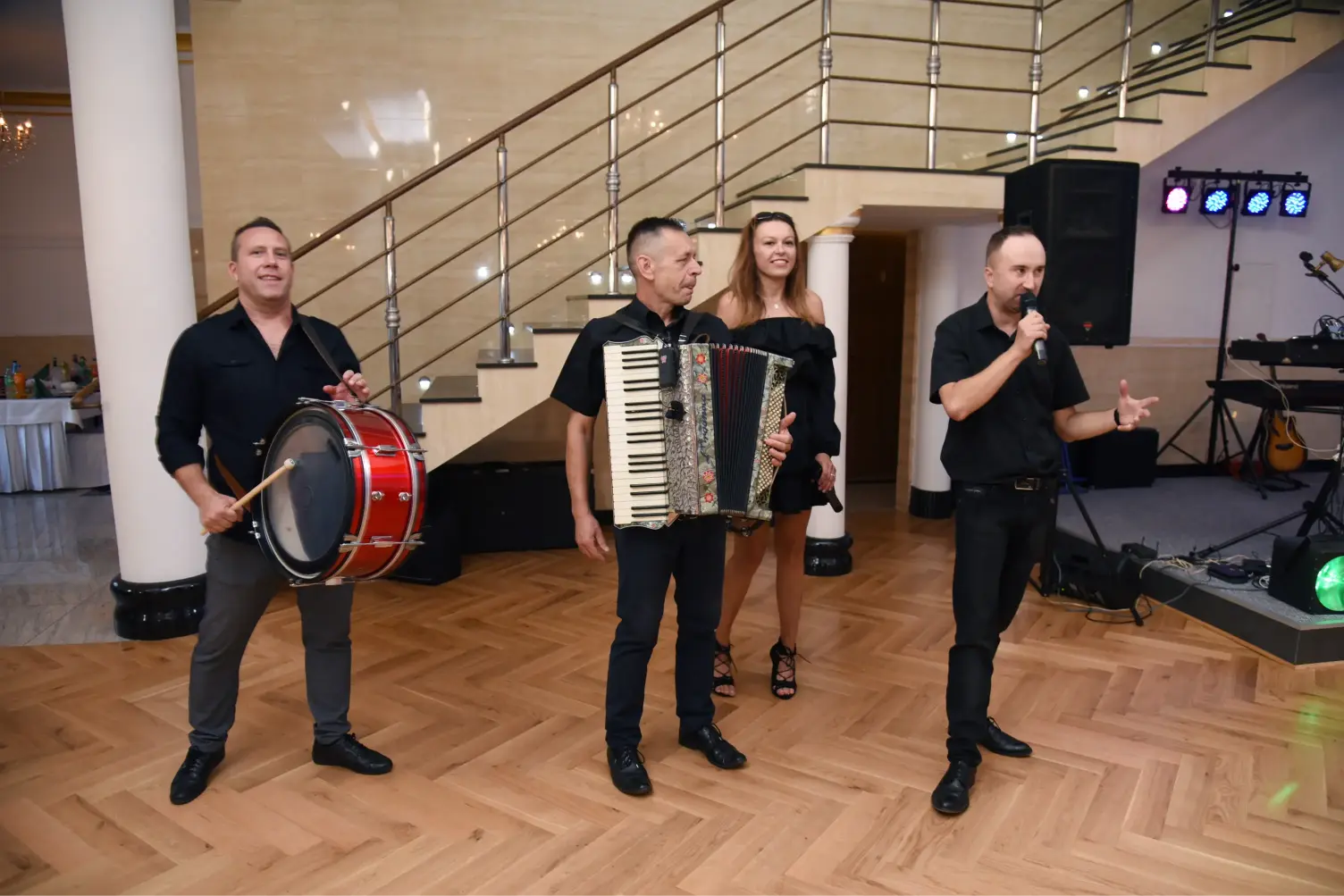 Pełna oprawa weselna obejmuje: muzykę na żywo, zabawy i oczepiny z wodzirejem, wspólne biesiady przy stołach, wyprowadzenie marszem z domu, efekty świetlne i dymne oraz wszelkie inne potrzebne atrakcje na Życzenie klienta. GOLDEN – Zespół na Wesele nr.1 od 2016 roku – 2025 Gramy Non stop.
